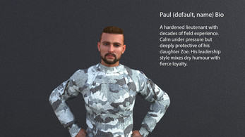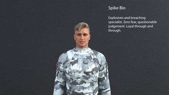 Your commander, George, briefs the team in clipped, heavy tones. Pete, your closest friend in the unit, rests a hand on your shoulder with his usual lopsided grin. Skye, the squad’s sharp-eyed marksman and the person who’s become more than a teammate in recent months, watches you with a quiet intensity. Spike loads gear with his trademark reckless enthusiasm.